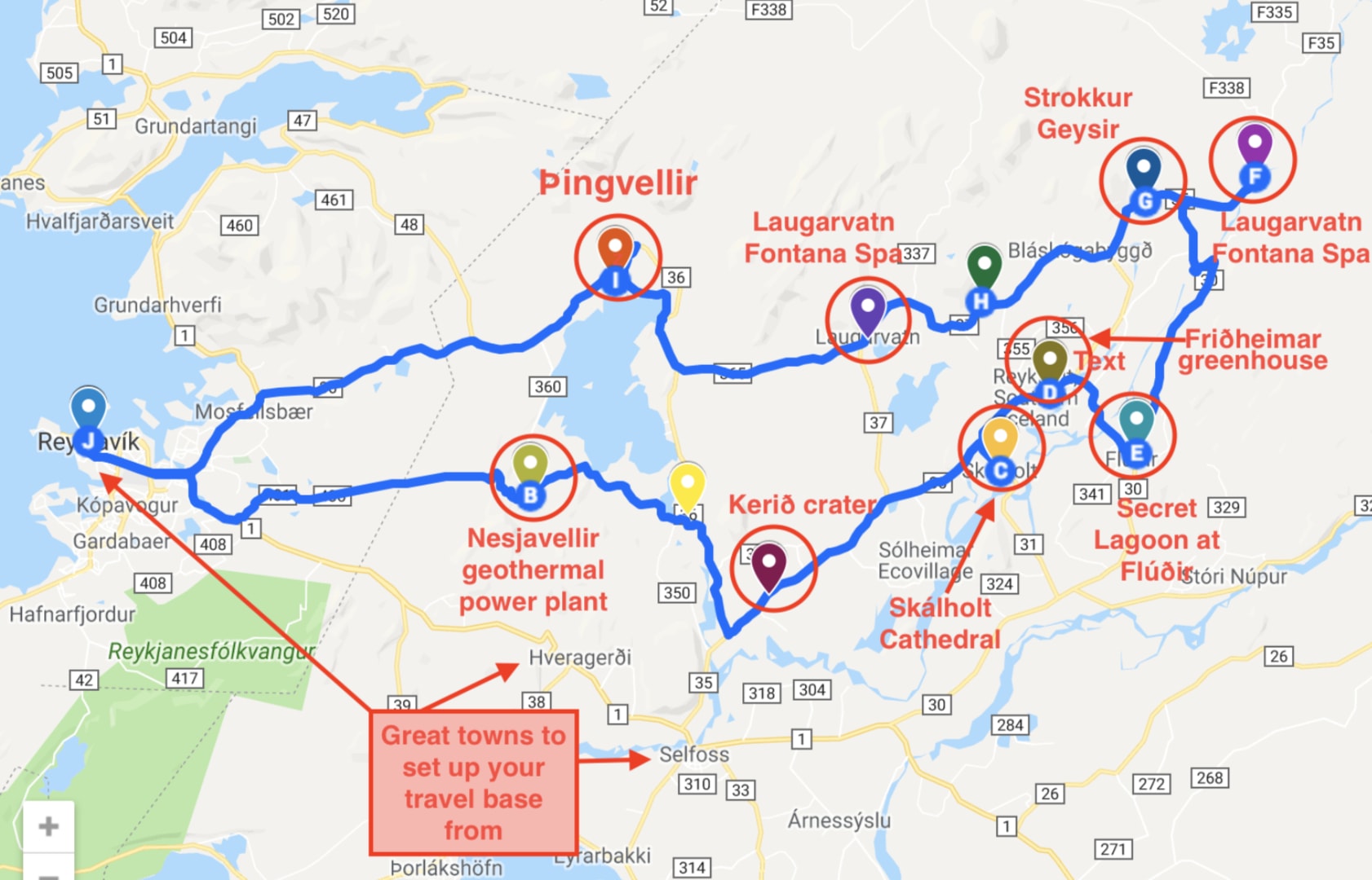 To help you visualise the area and plan your route, we’ve included this handy Iceland Golden Circle map that includes the locations of all the major attractions we have mentioned in this guide.